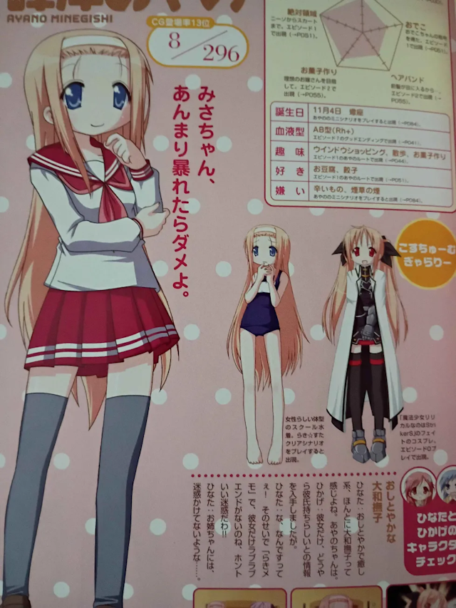 Outside of the game itself, Ayano's full design can be seen in the game's strategy guide,