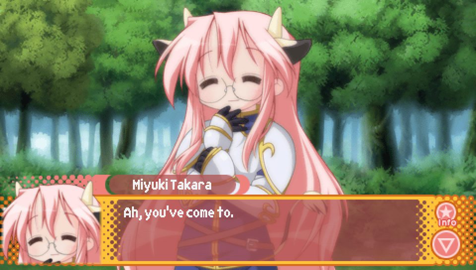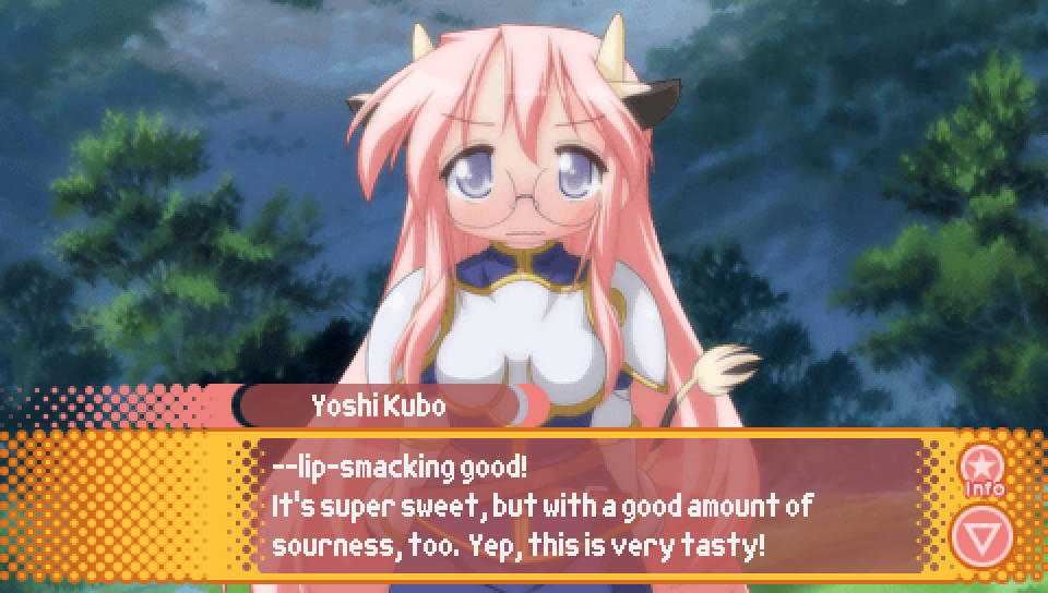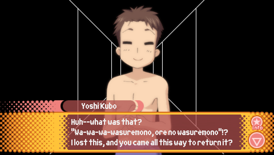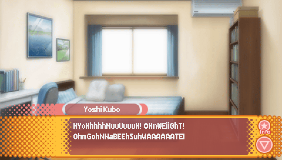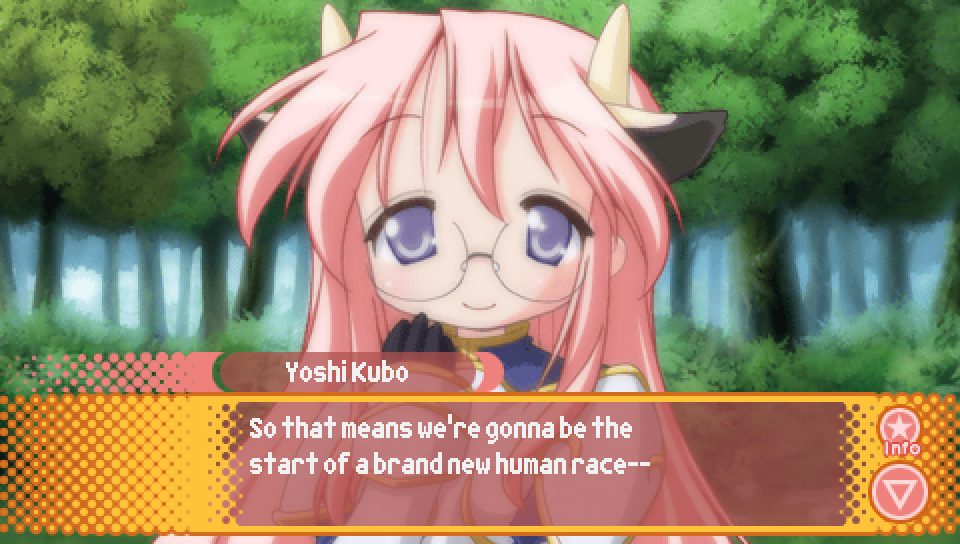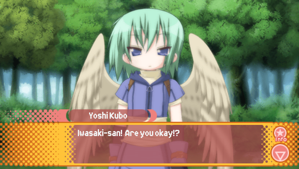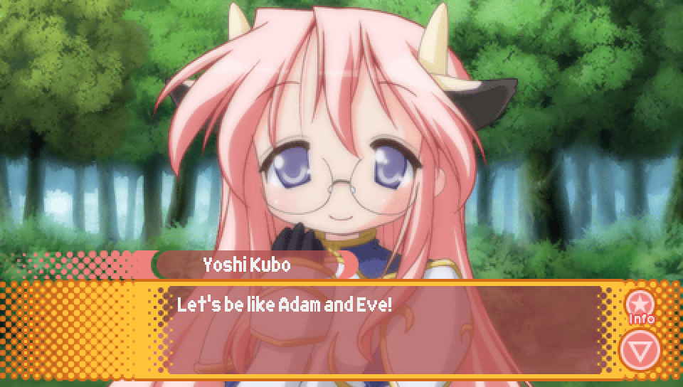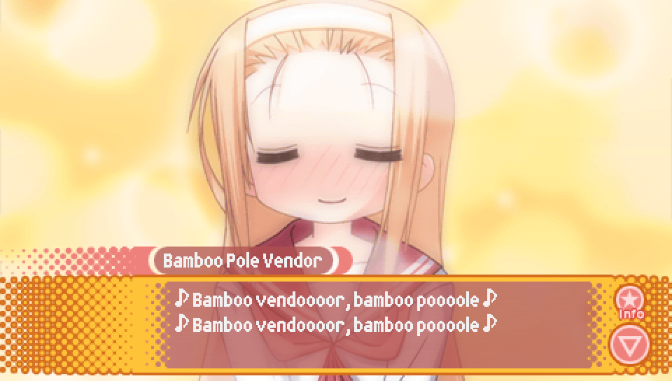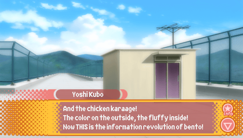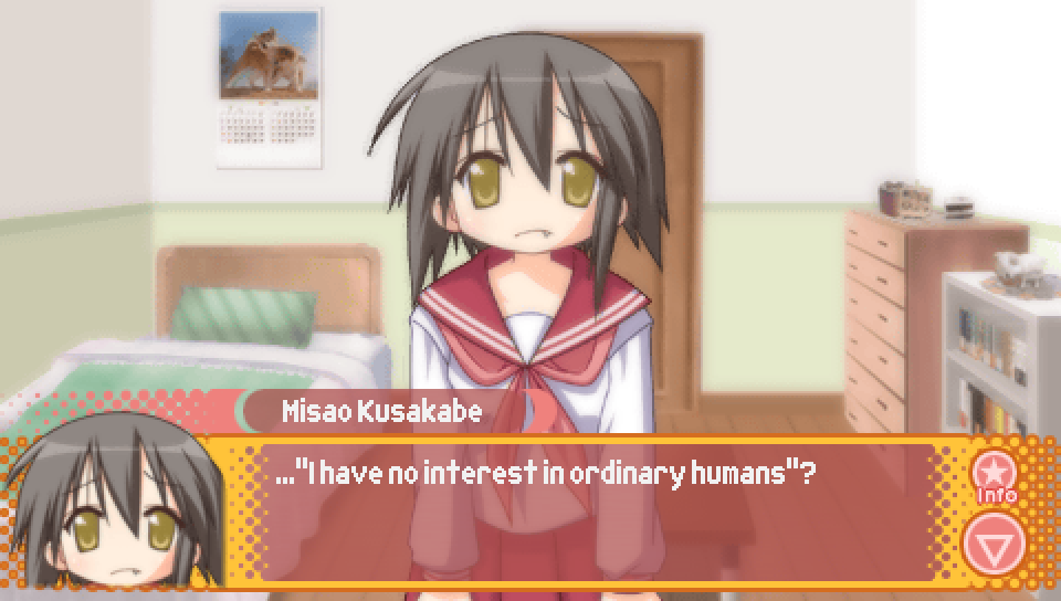 This line from Konata in the intro, where she talks about a game where you can