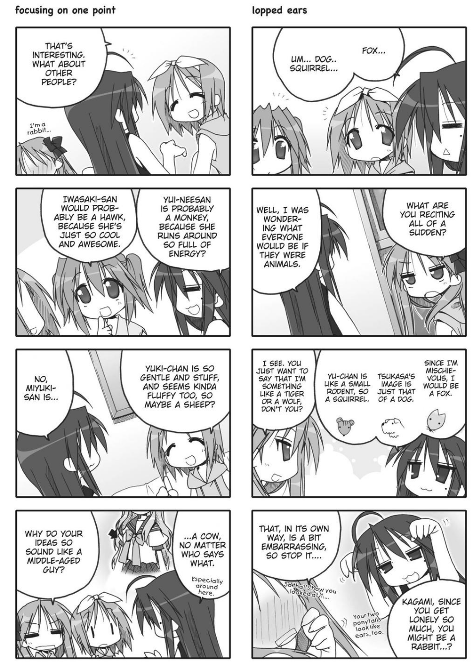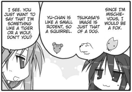 and refer to each other with derogatory nicknames. These nicknames are "Chibikko" for Konata