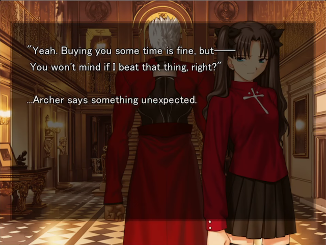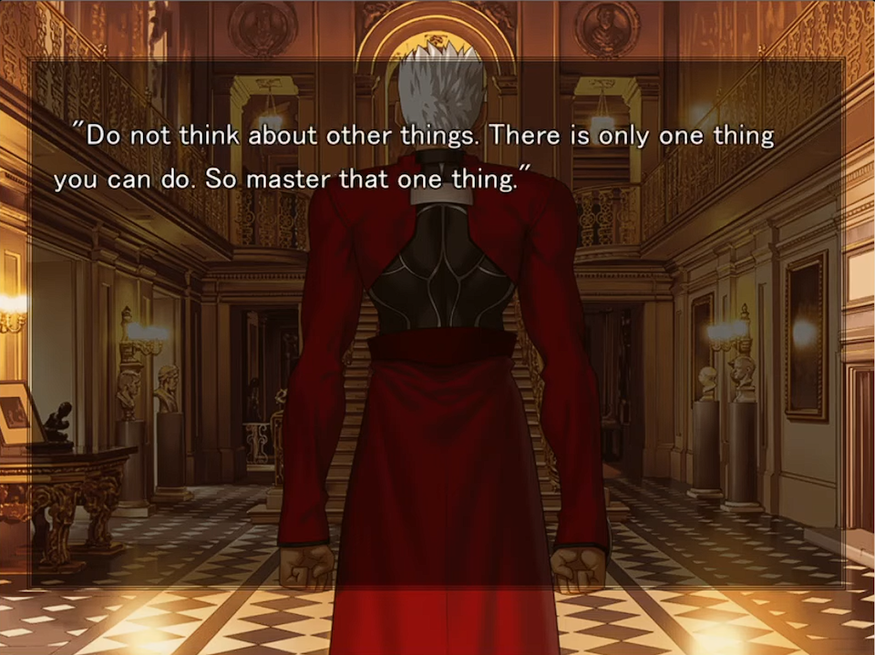of the route, he monologues his doubts about being able to play Shirou properly in the Fate/Stay Night play.