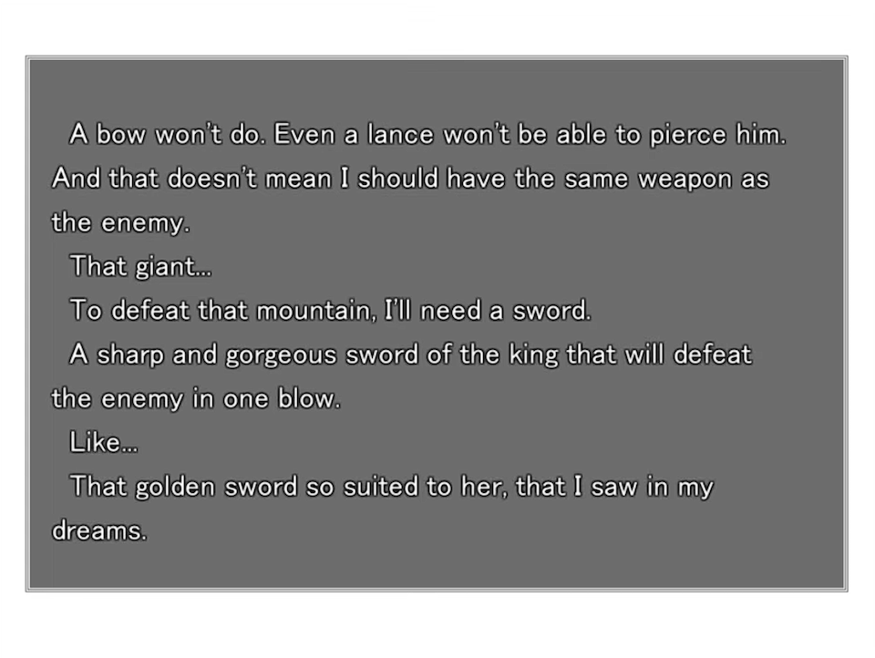 where Gilgamesh taunts Saber as she refuses to give up, recognizing that this is her moment of opportunity.