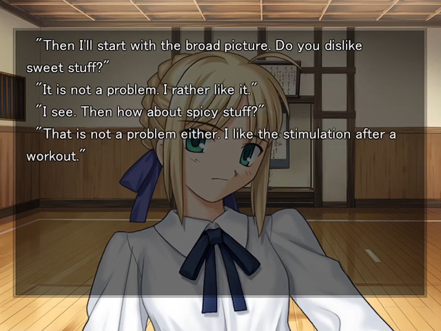 scene during the "Unlimited Blade Works" route of "Fate/Stay Night" where Shirou asks Saber about