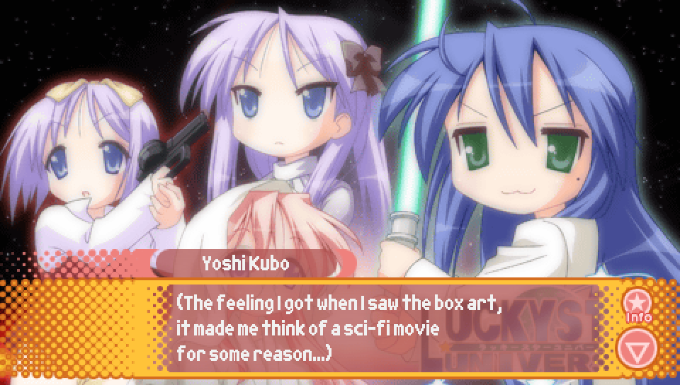 Lucky Star: Ryouou Gakuen Outousai. This reference was likely a bit bittersweet for