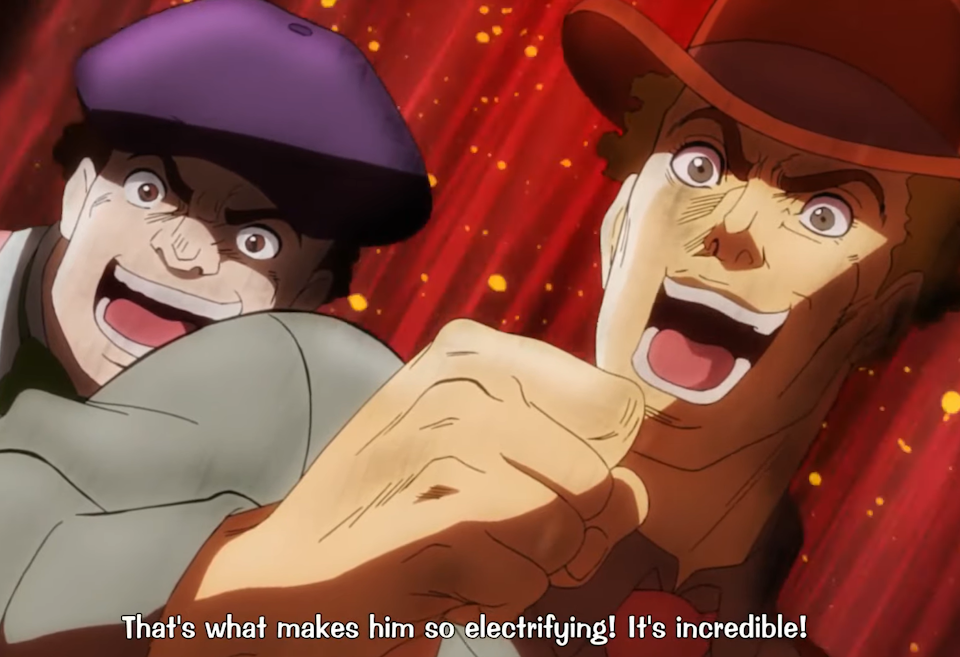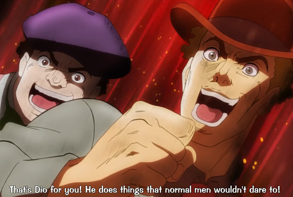 A clip from the "Jojo's Bizarre Adventure" anime featuring this moment
