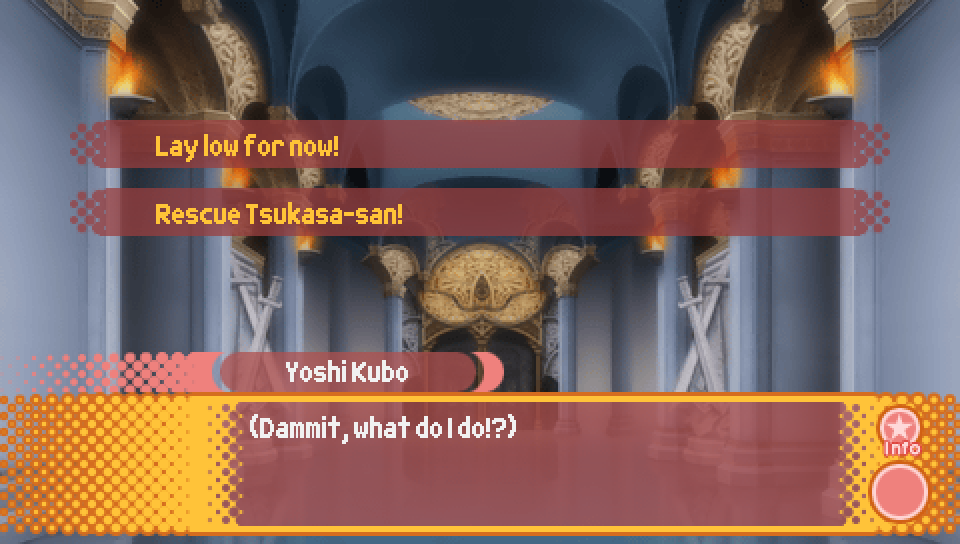 Note that "Kusakabe-san, switch places with me!" will only appear if you have gotten the good ending