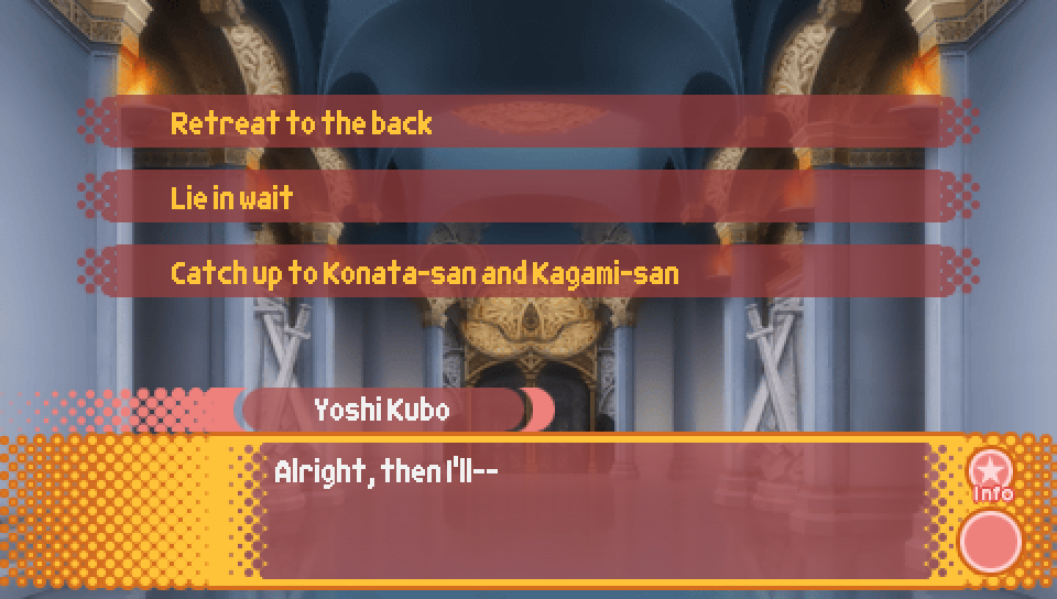 Additionally, note that the choice "What did you think, Kusakabe-san?" only appears if you have