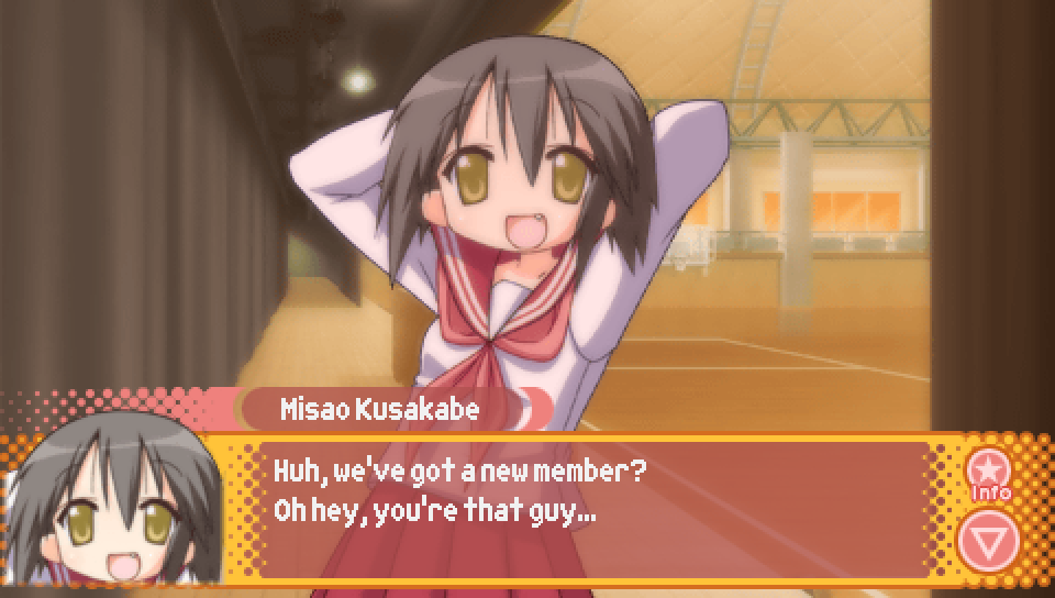 If you pass the check, Misao will call the protagonist just as he's about to leave the gymnasium to ask him