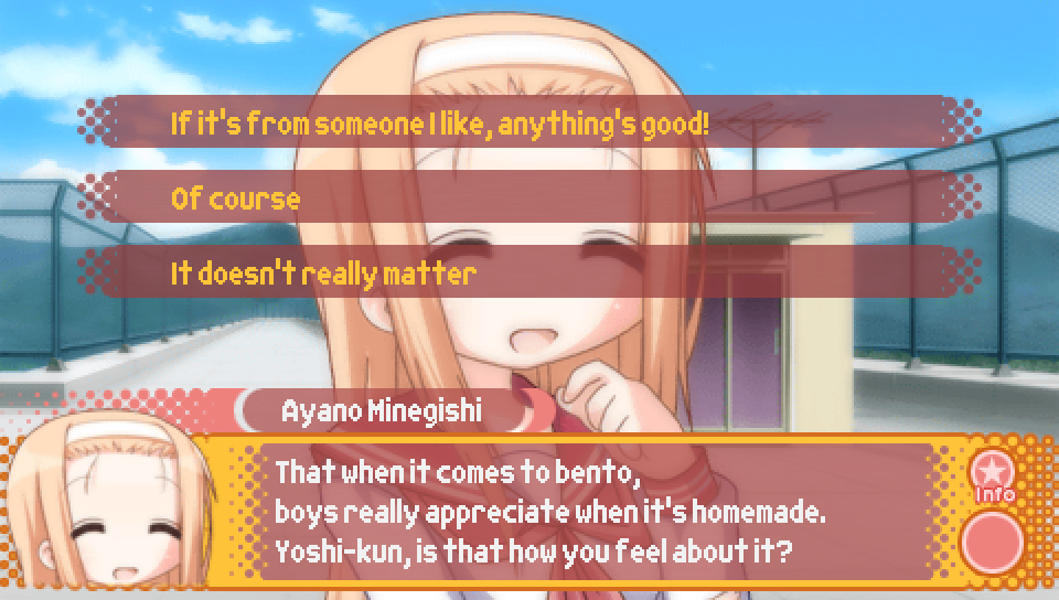 - Ayano Mini Scenario -- Get the good ending to Ayano's Lucky Lucky Memorial Route