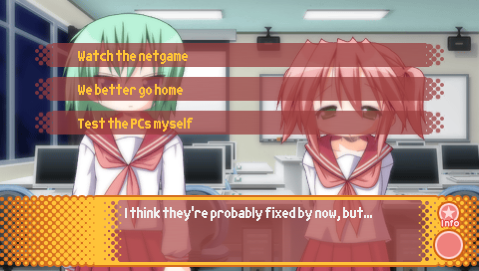 Note that you will only see this scene if you picked "Watch the netgame" for the previous choice.