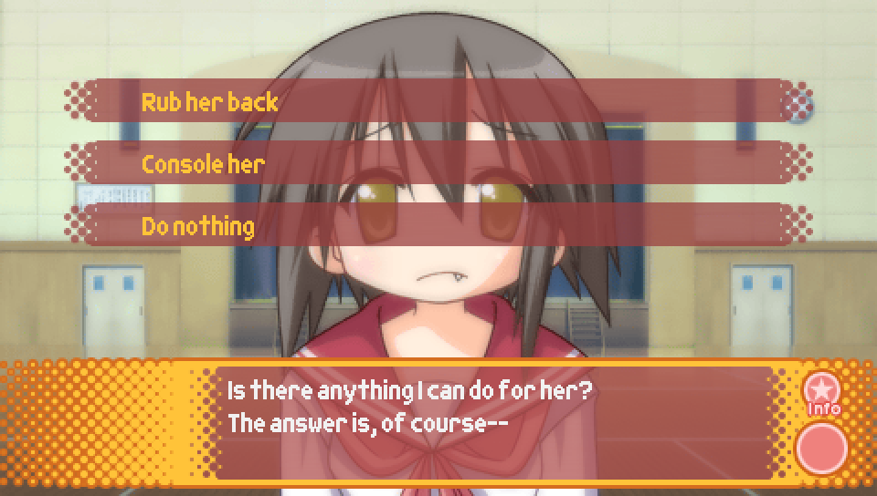 - Rub her back -- Misao favorability + 2