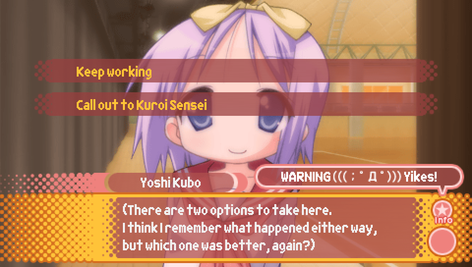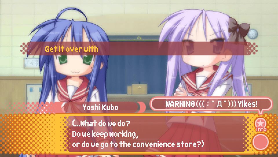 In this version, Kagami will suggest going to the convenience store for a snack break,