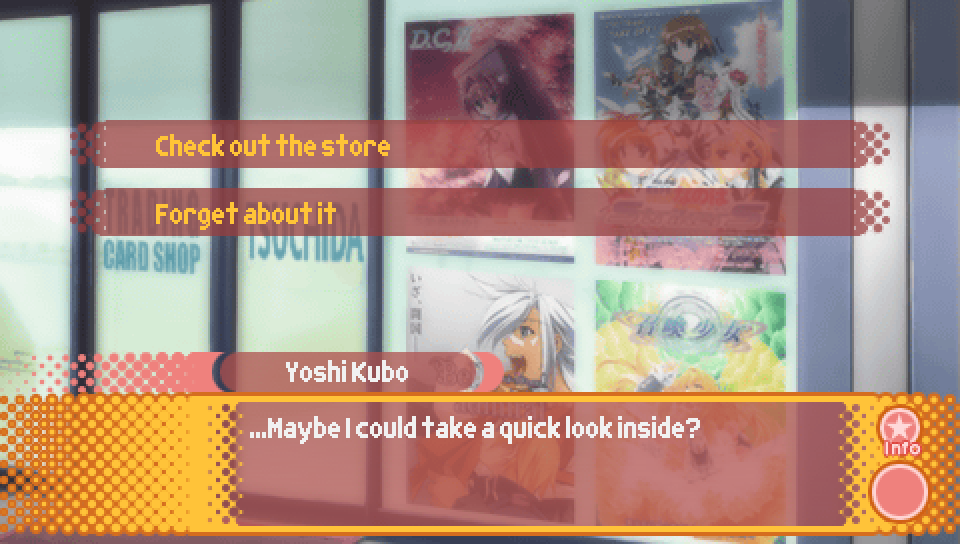 Note that by seeing this choice, you unlock the ability to go to the Trading Card Shop in Episode 1.